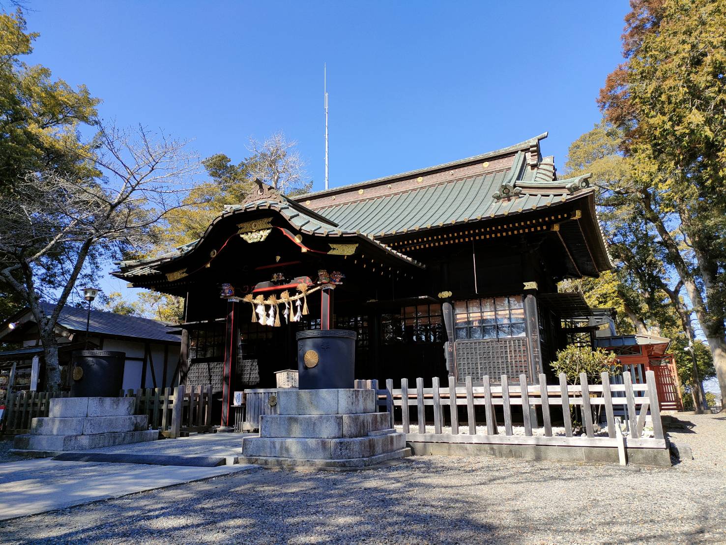珍しい黒漆塗り、権現造の社殿は1687年造営で千葉県指定有形文化財。