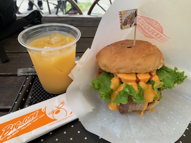 山頂の風を浴びながら、アメリカンサイズのハンバーガーを豪快に食べるランチは格別です。