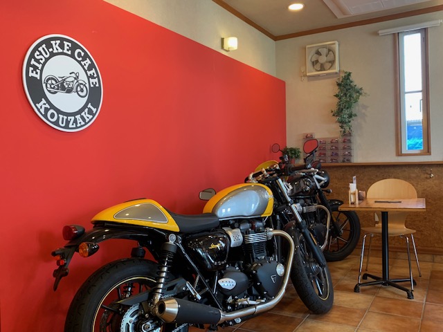 店内にはトライアンフSTREET CUPとSTREET SCRAMBLERが展示されており、オシャレな雰囲気の落ち着いたカフェになっております。