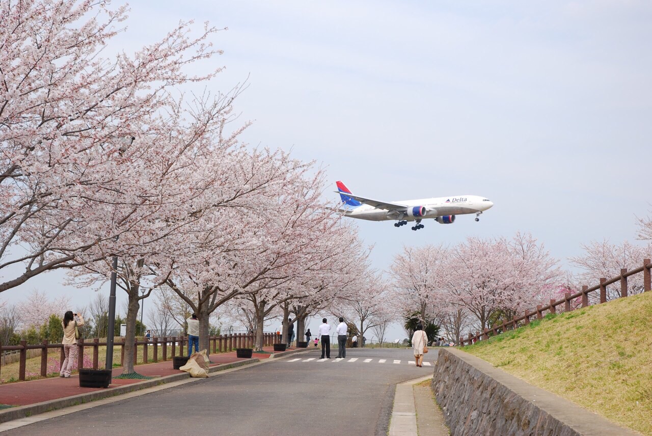 春は約500本の桜と飛行機とのコラボレーションが素晴らしく、ちば眺望100景にも選ばれています。