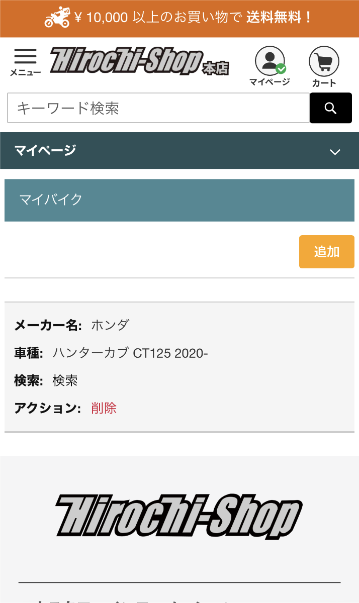 会員登録されている方は、マイページより、マイバイク登録をしていただけますと、